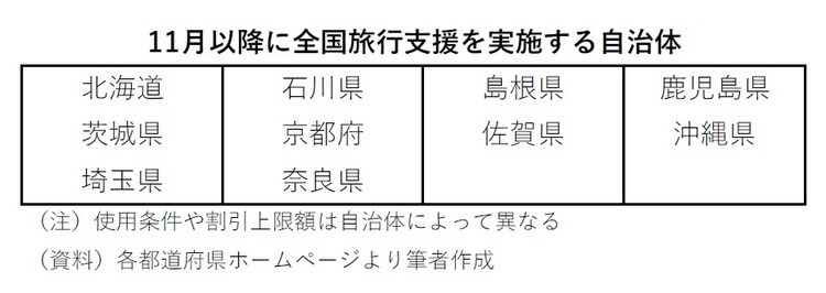 現時点(10月31日)で、10自治体が11月以降も、全国旅行支援を実施する。そのうちの多くでは、貸切バスを利用した団体旅行のみが対象となっており、個人旅行は除外されている。さらにホテル代高騰など物価高が向かい風となり、日本人延べ宿泊者数が減少する可能性がある。