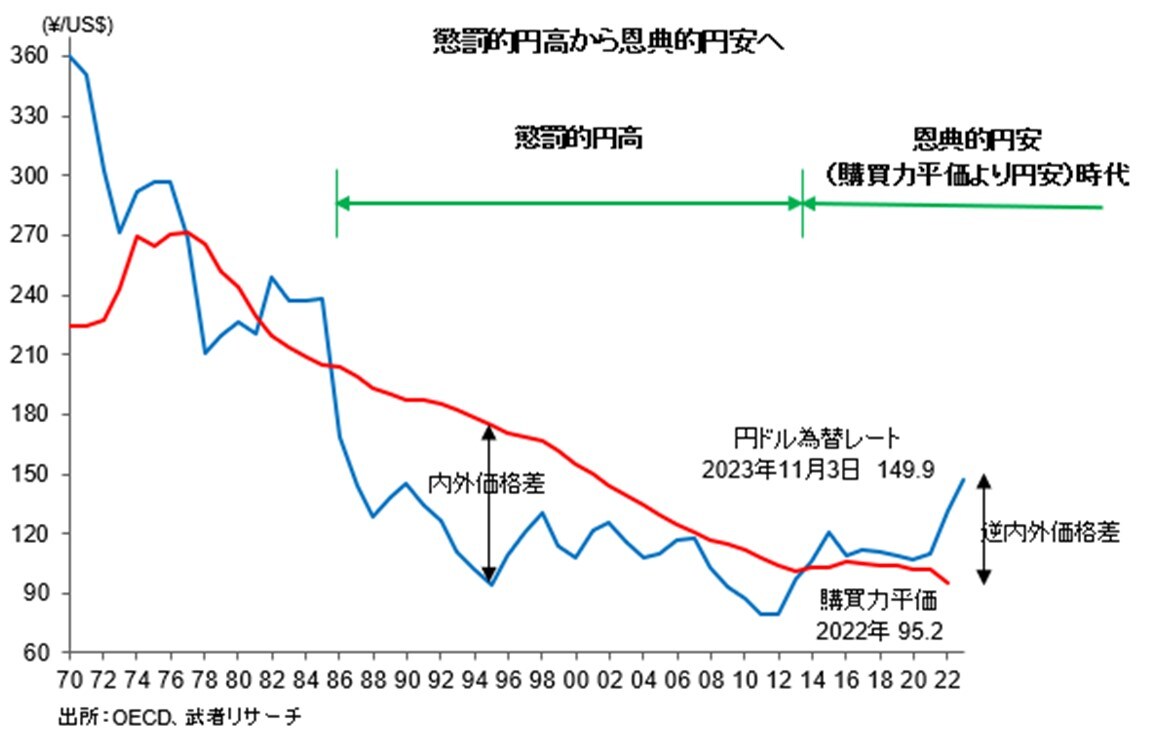 米中対立が深刻化し、かつて日本たたきに狂奔した米国が、対中デカップリングのために強い日本を必要とし、そのための円安を容認するようになったのである。