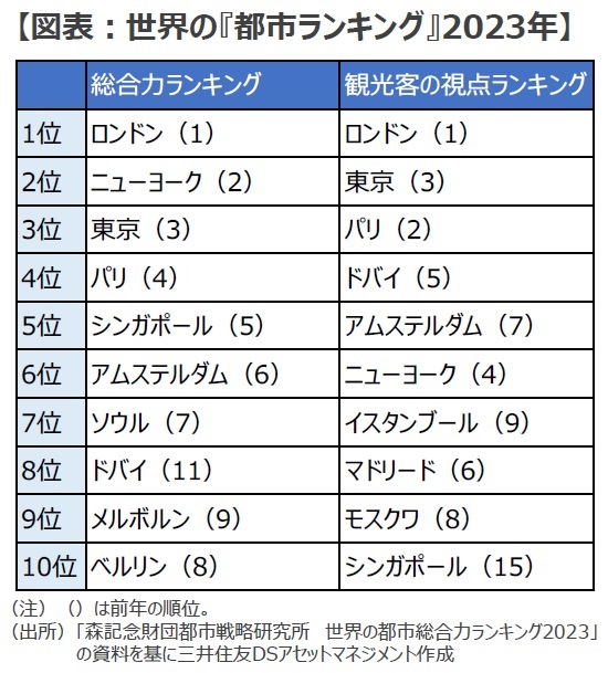 ※当レポートの閲覧に当たっては【ご注意】をご参照ください(見当たらない場合は関連記事『【最新版】世界の『都市ランキング』トップ10 ~「ドバイ」が初めてランクイン。「東京」は観光人気でパリを上回る』を参照)。