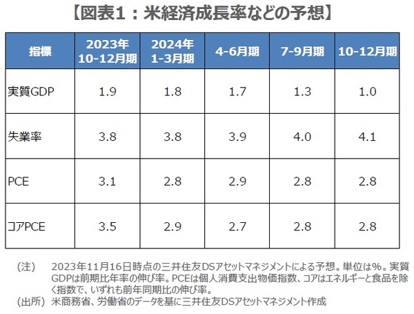 ●2024年の米経済はソフトランディングへ、失業率は上昇し、物価の伸びも一段と鈍化する見通し。