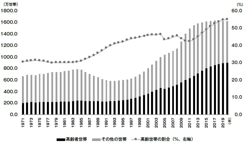 問題は、本来は年金で生活を送るはずの高齢世代が年金ではなく生活保護に大挙して流入してきていることだ。生活保護世帯全体に占める高齢世帯数は、2016年には全体の過半数を超え、2020年には、90.4万世帯と生活保護世帯数全体の55.2%にまで増加している※4。