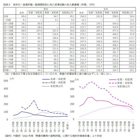 5――補足~就業状態や配偶関係を考慮した家事活動の収入換算額~専業主婦のピーク時は約500万円