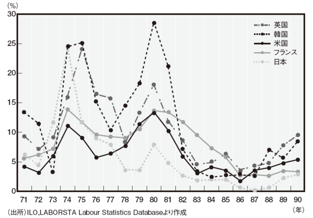 [図表1]各国の消費者物価指数の対前年上昇率の推移(1971~1990年)