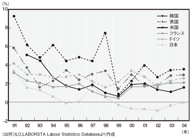 [図表2]各国の消費者物価指数の対前年上昇率の推移(1991~2004年)