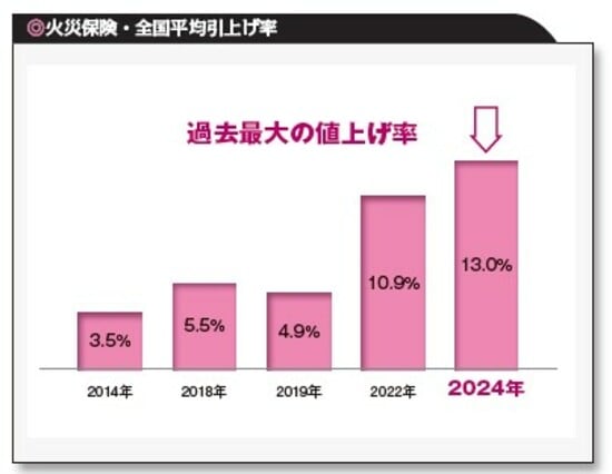 近年、火災保険の保険料は上がり続けていますが、2024年の引き上げ率13.0%は過去最大となります。([図表3]参照)。