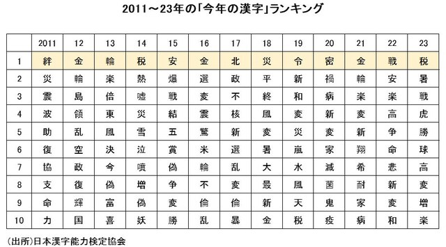~2023年「今年の漢字」は「税」。2014年にも選ばれていた漢字