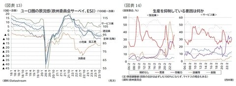 加えて、エネルギー価格高騰の余波でガス価格は低下したものの依然としてコロナ禍前の水準よりは高い状態にあること(後掲図表16)などが景況感を低迷させていると見られる。