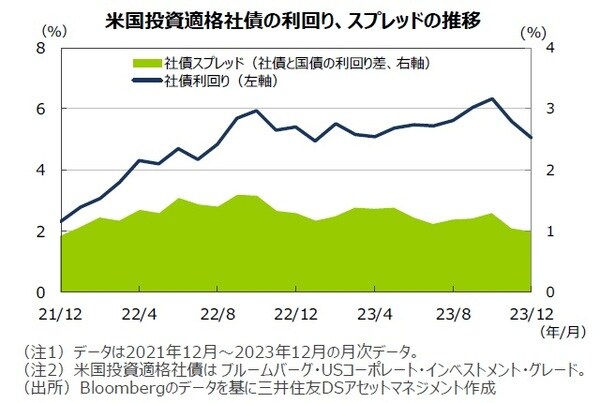 ●米国の投資適格社債については、株式市場の上昇を受けて国債と社債の利回り格差が縮小しました。