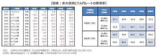 ※当レポートの閲覧に当たっては【ご注意】をご参照ください(見当たらない場合は関連記事『【ドル円相場】共和党大統領なら「ドル安」、民主党大統領なら「ドル高」…米大統領選挙と金融市場の“経験則”(解説:三井住友DSアセットマネジメント・チーフマーケットストラテジスト)』を参照)。