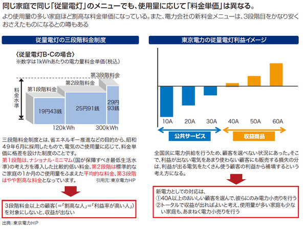 これによって、使用量が多いほど、電気料金が高くなるだけでなく、電力単価も高くなるという仕組みなのです。