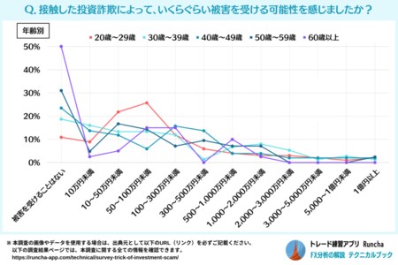 ・投資詐欺に巻き込まれた場合の被害金額は、「50万円~100万円未満」の規模になることが多いと推測される