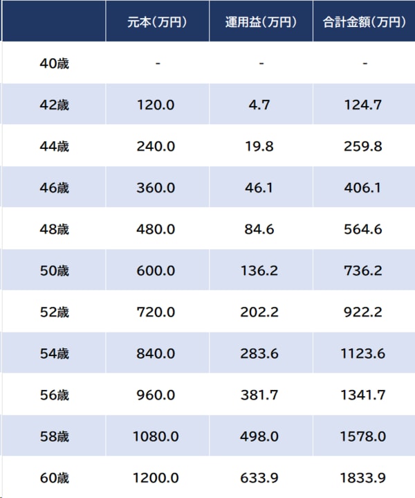 毎月の積立金「5万円」を「年率4%」で20年運用した場合