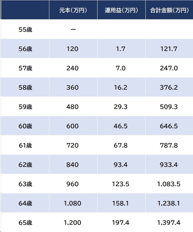 毎月の積立金「10万円」を「年率3%」で10年運用した場合