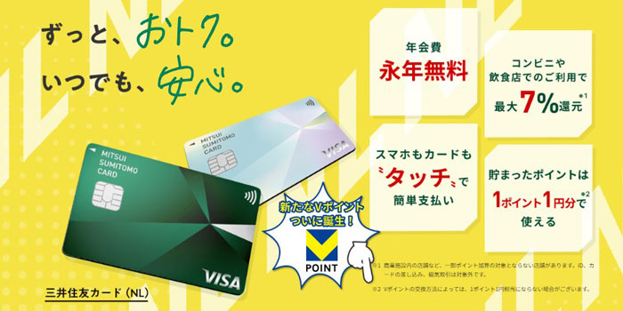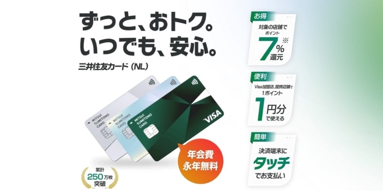 「三井住友カード(NL)」スマホのタッチ決済でポイント7%のお得なカード!
