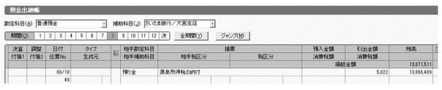 給料手当と支払手数料を訂正し、総額に置き換え、源泉所得税は「預り金」として、下記のように入力します。入力後、預金出納帳の残高が変わっていないことを確認します(図表1下)。