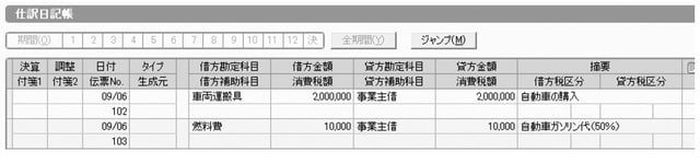 購入額200万円、ガソリン代2万円は親が支払っているとき、車両運搬具については、按分せず購入額そのままで入力し、固定資産台帳に登録する際、事業供用割合50%と入力します。