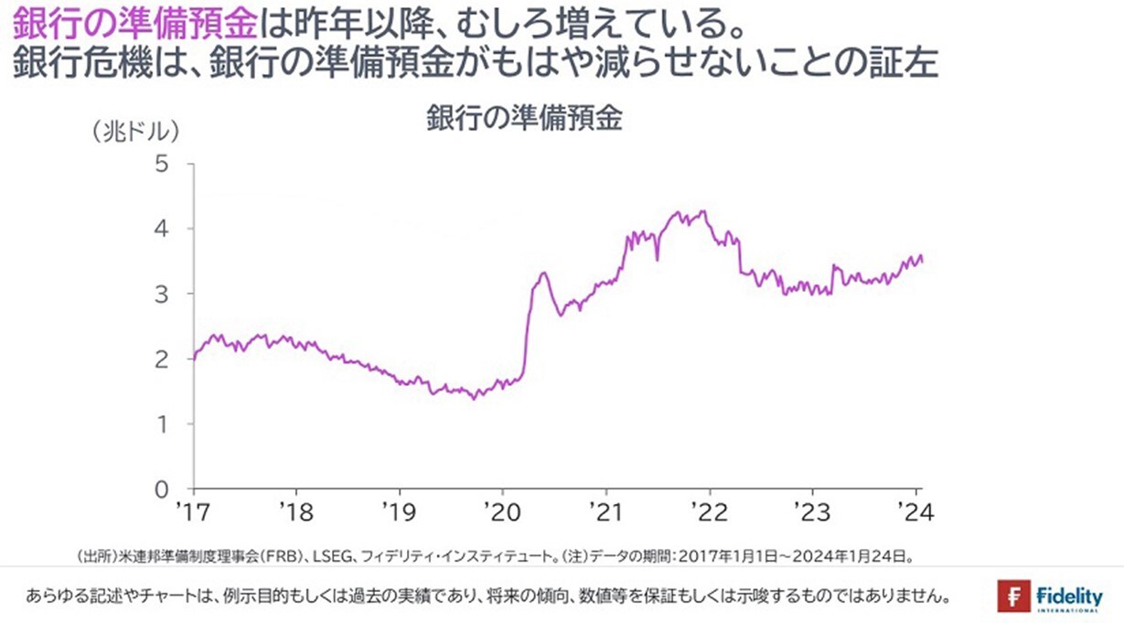 こういうと「銀行の準備預金は潤沢にあるのでは?」と返されるかもしれません。たしかに、[図表1]に示すとおり、銀行の準備預金は3兆ドルを超えています*。