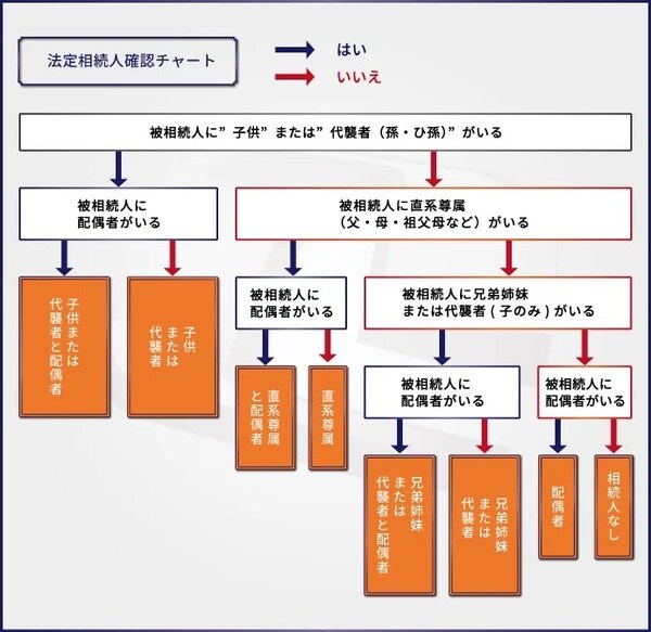 さらにこの相続人関係図だけではなく、相続人発見フローチャートを用いることでも、簡単に相続人の範囲を知ることができますので、下記でも併せて確認してみましょう。