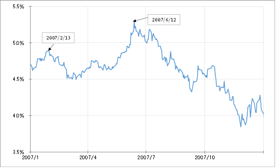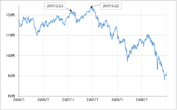 では、日米政策金利差が、最近と同じように「大幅な米ドル優位・円劣位」となっていた、2007年のケースを参考に考えてみましょう。