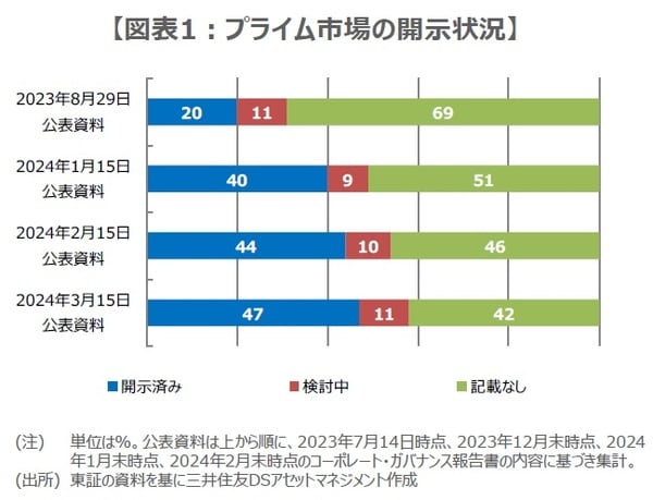 ※当レポートの閲覧に当たっては【ご注意】をご参照ください(見当たらない場合は関連記事『プライム市場は「開示済み」47%…東証が示す“好事例”増加なら、株高はより持続されよう【解説:三井住友DSアセットマネジメント・チーフマーケットストラテジスト】』を参照)。