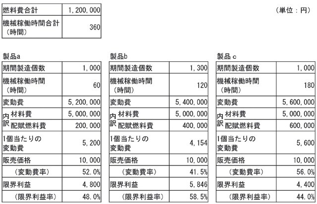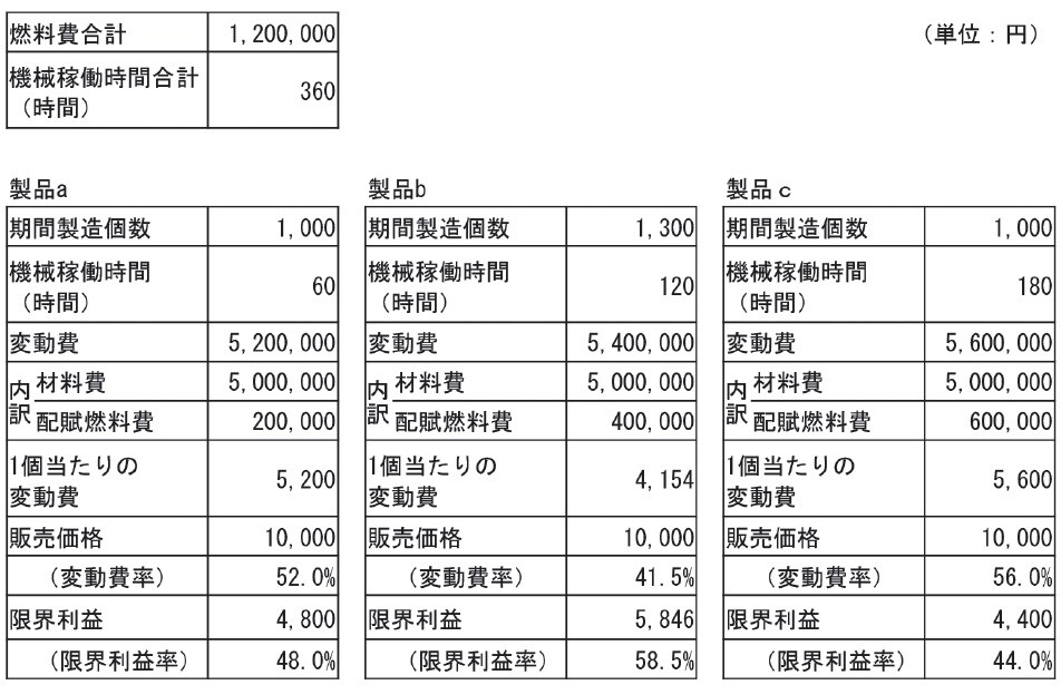 製品b、製品cの燃料費も同様の計算で算出されます。