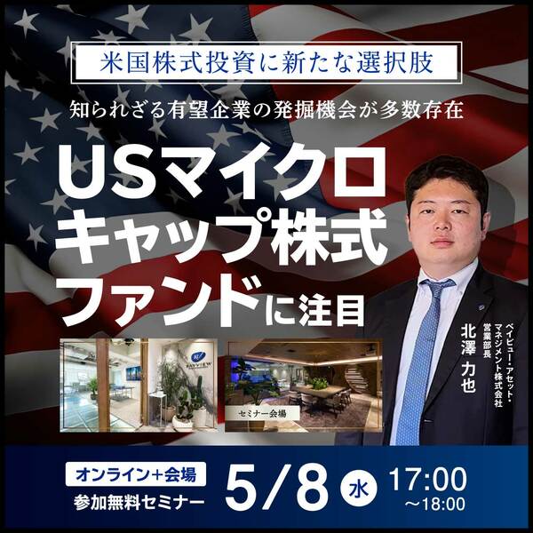 北澤氏の話から、いまこそ「米国超小型株式」に注目すべき理由が明確になっただろう。5月8日には、再び「USマイクロキャップ株式ファンド」の魅力ついて語るセミナーを開催する。今回はオンラインに加え、洗練されたデザインと機能性を兼ね備えたベイビュー・アセット・マネジメント株式会社のブティックハウスらしい空間にて、本ファンドの投資戦略の特長や優位性について説明するという。詳細、申し込みは下記で確認してほしい。