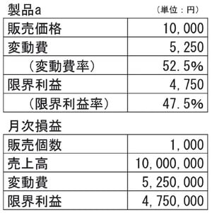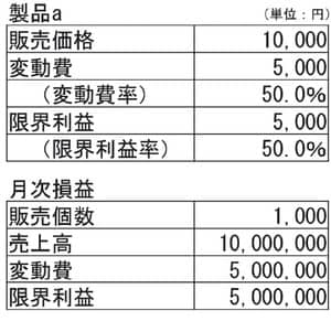 こちらは変動費上昇前の製品aの変動損益の状況です。
