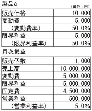 月次の変動損益を見ると限界利益が5,000,000円、固定費が4,500,000円、営業利益が500,000円、営業利益率が5%となっています([図表8])。