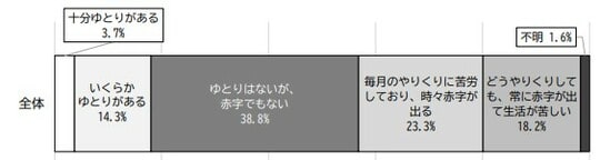 ・「毎月のやりくりに苦労しており、時々赤字が出る」……23.3%
