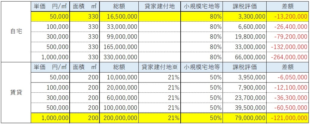また、小規模宅地等の特例の適用や賃貸不動産による評価引き下げの効果を勘案しても地元よりも大きく効果がでることがわかった。