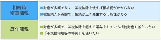 先生:注意していただきたいのですが、精算課税で自宅を贈与すると、相続の際に自宅土地の評価額を80%減らす「小規模宅地等の特例」が使えなくなのです。この特例を利用するなら、暦年課税を検討しましょう。