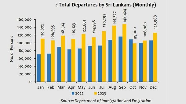 スリランカ中央銀行が引用した海外雇用局(当地政府機関)のデータによると、2023年8月における労働者として他国へ渡る同国の出国者数は2万6,394人で、2022年同月の2万9,186人から減少した。9月の出国者数は、2022年同月の3万104人から2万5,311人に減少した。パスポートの発行件数は2023年6月から減少し始めた。