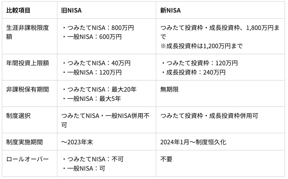 2024年1月から新NISAが開始され、大幅な制度内容の変更が行われました。変更点は表1を参考にしてください。