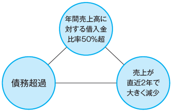 ②債務超過(貸借対照表の純資産がマイナス)
