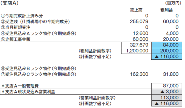 要は受注ベースで当期、次期の数字を見ていくのである。逆に言えば、受注現場の工期は規模にもよるが、通常は最低でも3カ月はかかるため(長ければ半年から1年、2年かかる)、期の折り返し地点(決算の6カ月経過時点)である程度、受注を確保(目標の70%付近)しておかないと、最終地点で数字が届かないとも言える。