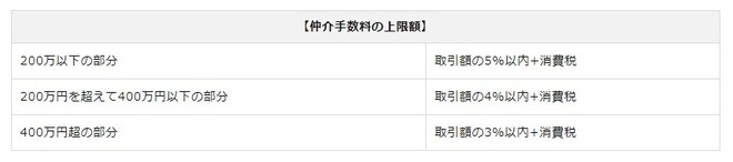 仲介手数料は、不動産仲介会社を通して不動産物件を購入した際に不動産仲介会社に支払う成功報酬です。仲介手数料は宅地建物取引業法の第46条にて上限額が決められており、上限額は以下のようになっています。