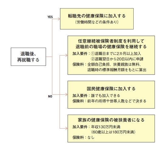 退職後の健康保険の扱いは再就職するかしないかで変わってきます。