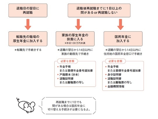 会社を退職すると、それまで加入していた厚生年金保険の加入資格がなくなります。退職翌日から新しい会社に再就職する場合は、厚生年金を継続することになるので、特に手続きは必要ありません。