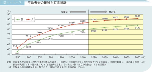 2016年7月27日に発表された、日本人の平均寿命(0歳時の平均余命)は、女性が87.05歳、男性は80.79歳で、いずれも過去最高を更新しました。