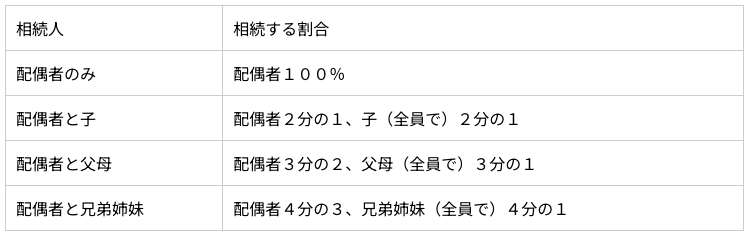 相続には順位があり、配偶者がいる場合は常に最優先されます。その次に子供、直系尊属(父母や祖父母)、そして兄弟姉妹が続きます。添付の表を参考にしてください。