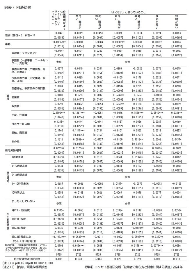 ニッセイ基礎研究所が被用者を対象に実施した「被用者の働き方と健康に関する調査」によると、およそ4割(2024年調査では40.2%)の人が「職場の作業環境(騒音、照明、温度、換気など)はよくない」と感じていた。よくない内容を尋ねた結果、「冬、職場が寒い」が最も高く、次いで「夏、職場が暑い」「換気が悪い」「機械類の音がうるさい」が続いた。それぞれ、どういった人が職場の作業環境のどういった内容によくないと感じているのか、ニッセイ基礎研究所の村松容子氏が解説する。