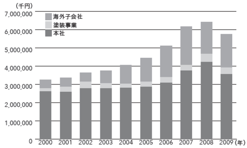 2008年以前は、取引先の業態にあわせ4輪、2輪、調理、電気・機械のグループからなる営業部制を導入していましたが、各事業の将来性を見込み、カンパニー制を目指し、事業部制を導入。塗料を販売する機能性塗料事業部、製品のコーティング加工までを請け負うコーティング事業部、環境対応製品を開発する環境商品事業部の3事業部を立ち上げたのです。