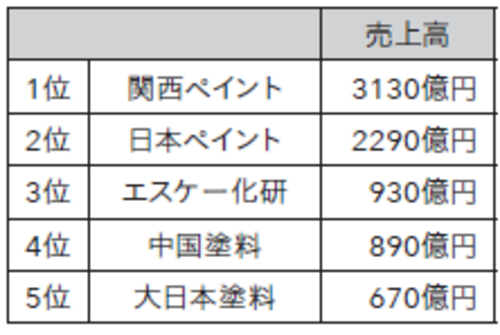 [図表3]2015年塗料業界売上高ランキングトップ5