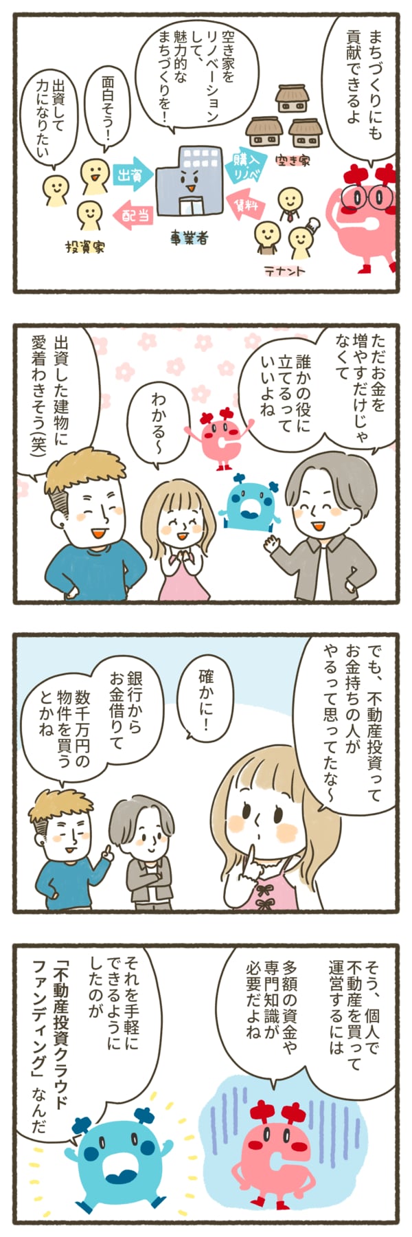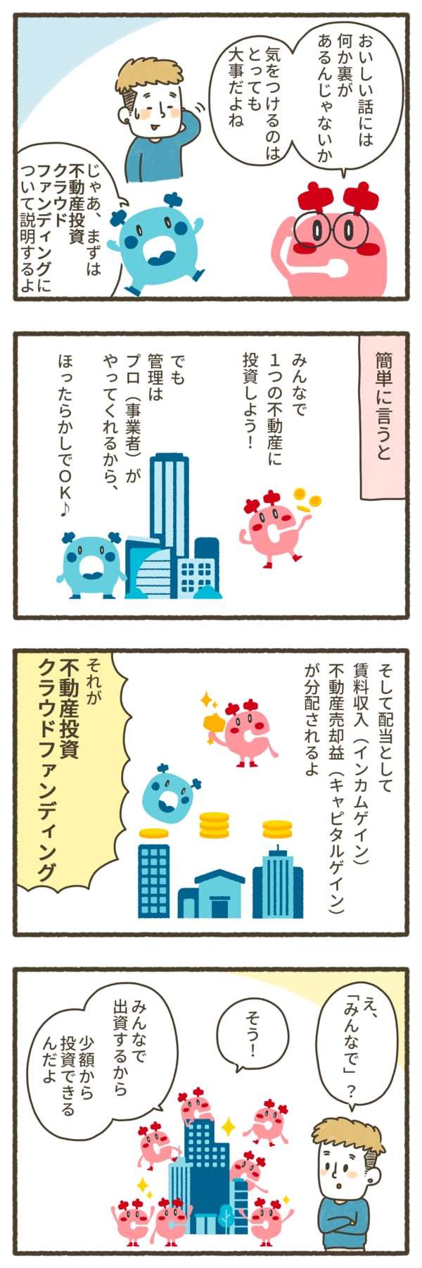 最近、よく耳にする「不動産投資クラウドファンディング」とは何? マンガで分かりやすく解説していきます。