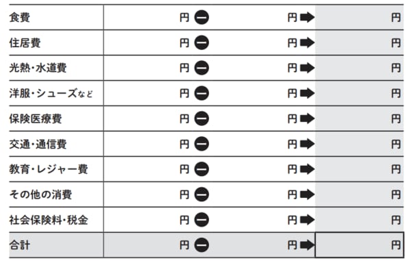 計算の仕方を覚えるために、現在の生活をもとに算出していただければ結構です。
