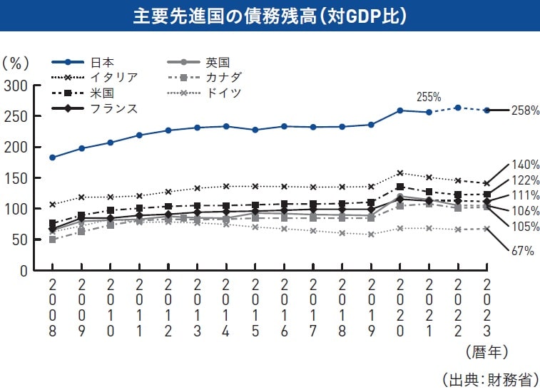 国の財務の健全性を示す指標のGDP対比の債務残高は先進国の中でぶっちぎりで日本はトップを独走しており、先進国の中で最悪の財務体質ということを表しています。もし日本の財政が破綻する、もしくは破綻が懸念されるようなことが起これば、日本の通貨や株式の価格は大暴落するでしょう。つまり、円預金や日本株など国内の資産しか持っていない富裕層の資産は壊滅的な状態になるわけです。