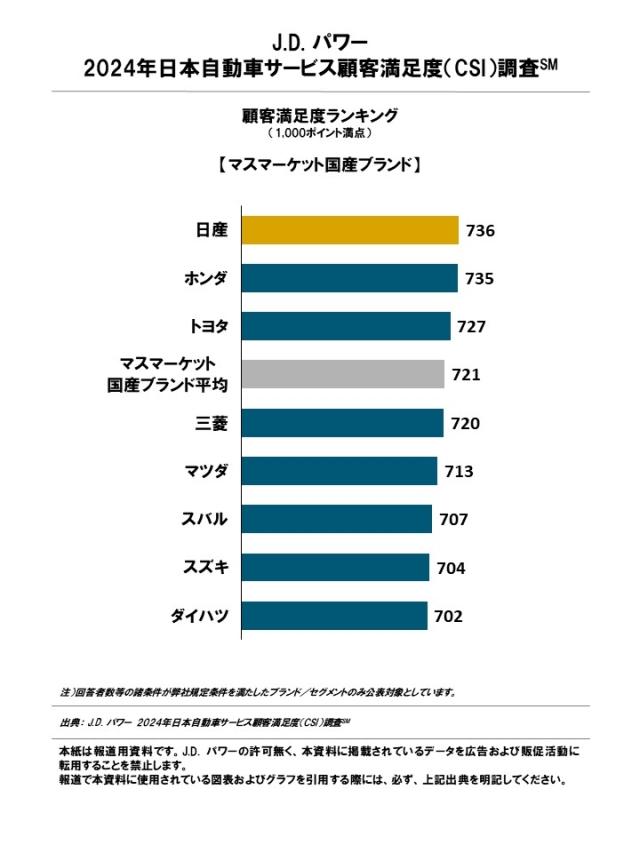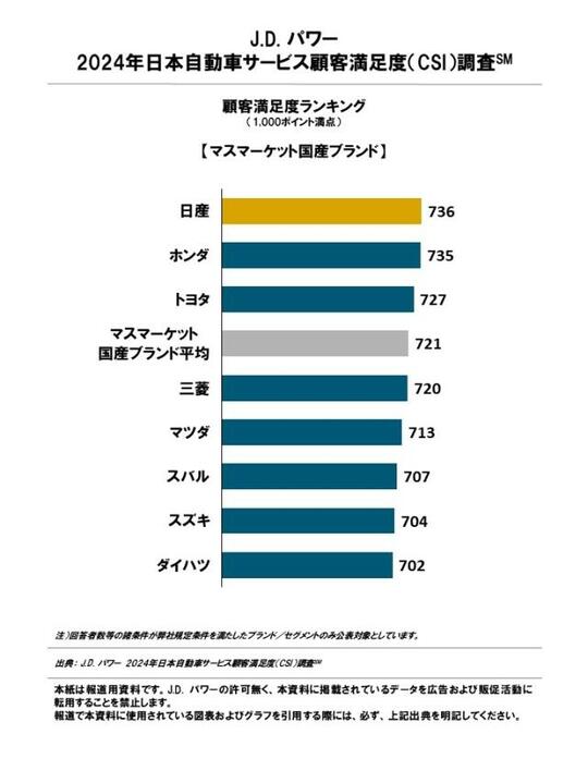 J.D. パワー 2024年日本自動車サービス顧客満足度調査総合満足度ランキング