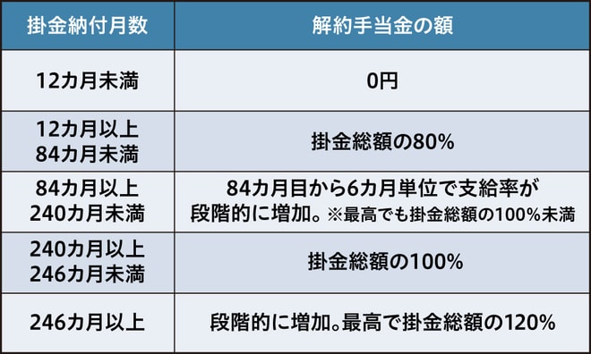 まず、掛金納付月数が20年未満で、自己都合による任意解約や12ヵ月以上掛金を滞納して機構による契約解除になった場合、元本割れのリスクがあることです。小規模企業共済は任意で解約が可能ですが、解約時に受け取る解約手当金は、掛金の納付期間によって異なります。特に、掛金の納付期間が240ヵ月未満、つまり20年未満の場合は、解約手当金が掛金総額の100%未満となり、元本割れする可能性があります(図表3)。