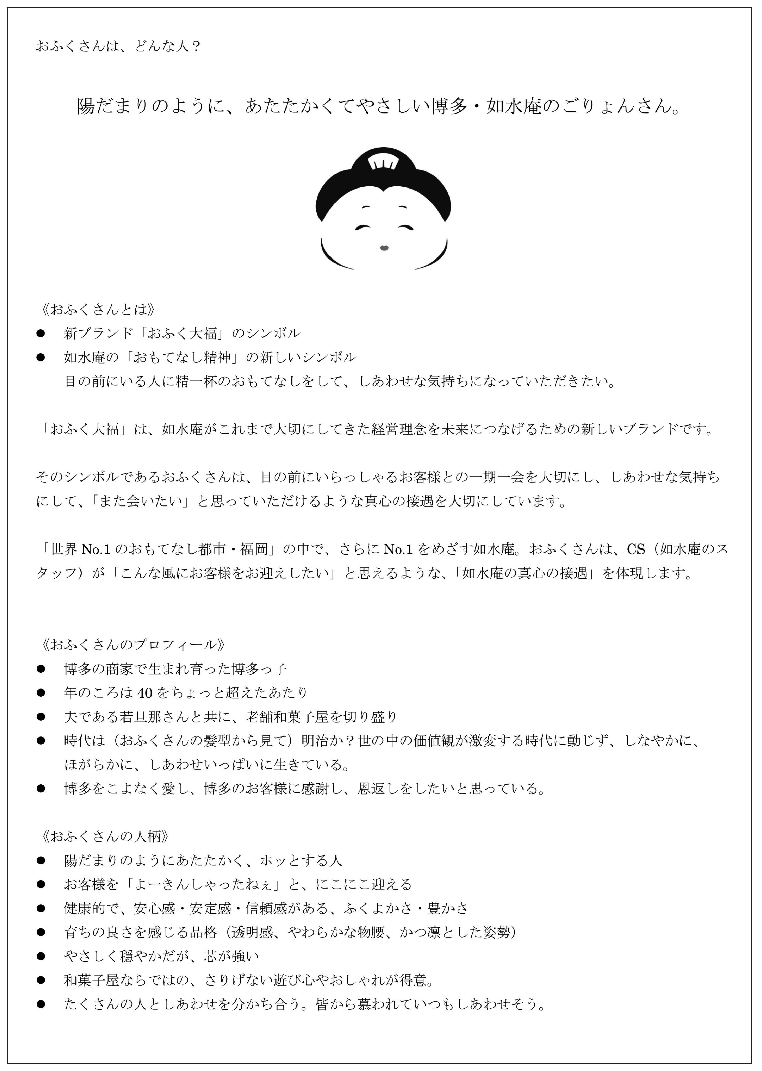 そうして出来上がってきた如水庵の「おふくさん」はブランドの人格化を超え、まるで「おふくさん」に生命が宿ったように生き生きとしたブランドの象徴になりました。