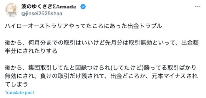 ハイローオーストラリアの悪い評判を見ると、出金拒否や講座凍結などの情報が目立ちます。
